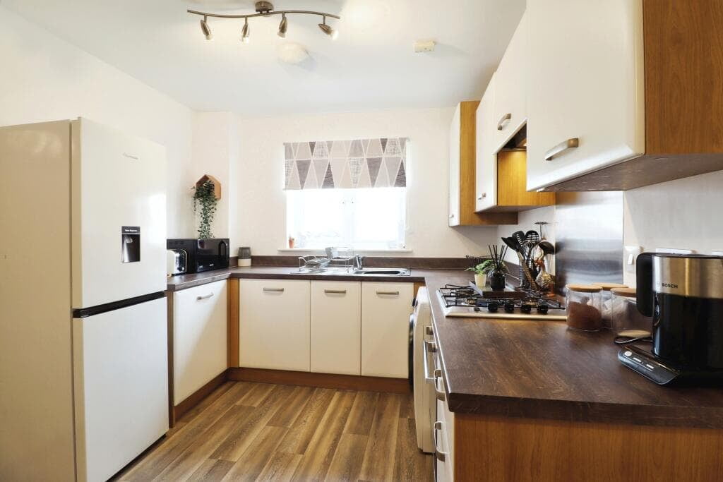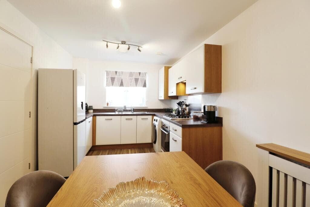 Built in 2019, offers a perfect blend of modern living and convenience. The property features an inviting entrance hall, a convenient ground floor WC, and a spacious lounge that opens through double doors onto a beautifully landscaped rear garden. The large, modern dining kitchen comes equipped with integrated appliances, making it a fantastic space for entertaining and family meals.