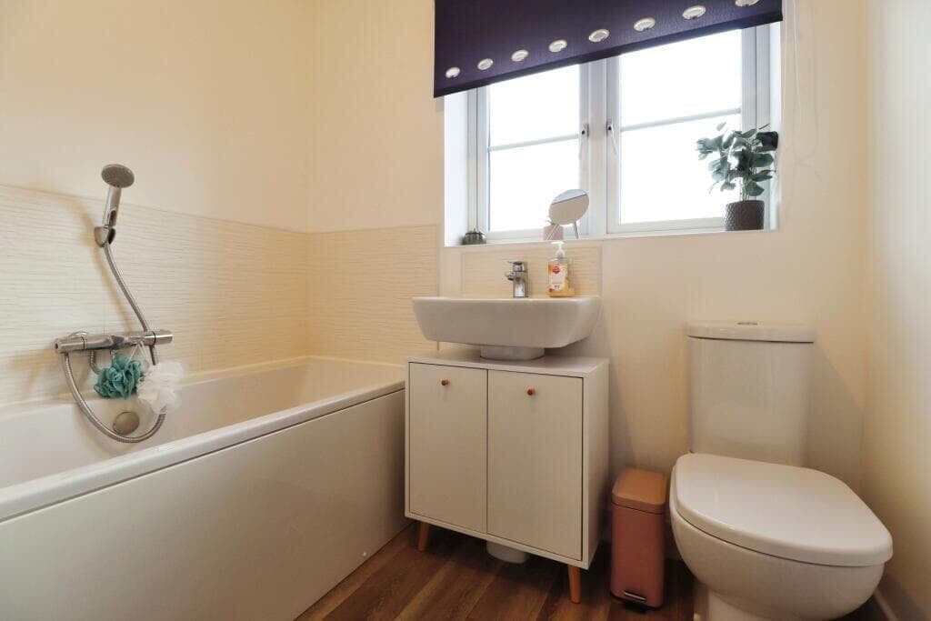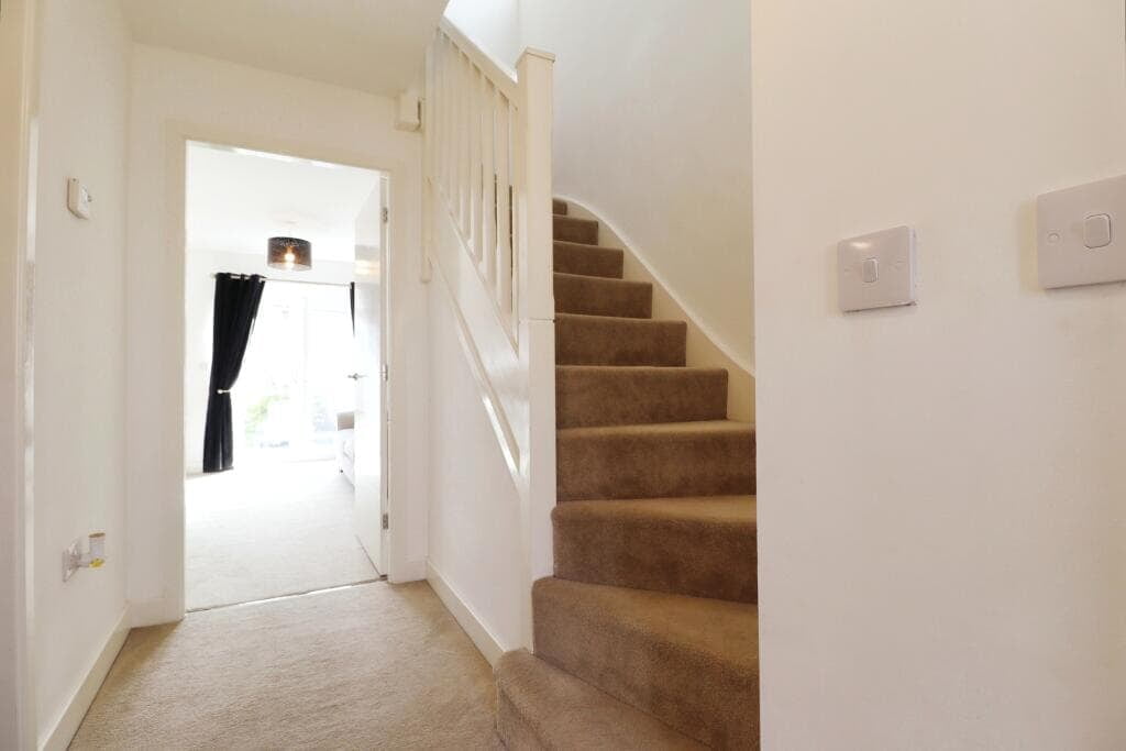Upstairs, you'll find a well-laid-out landing leading to three bedrooms. The main bedroom benefits from an en-suite shower room, while the other two bedrooms share a stylish and modern house bathroom.