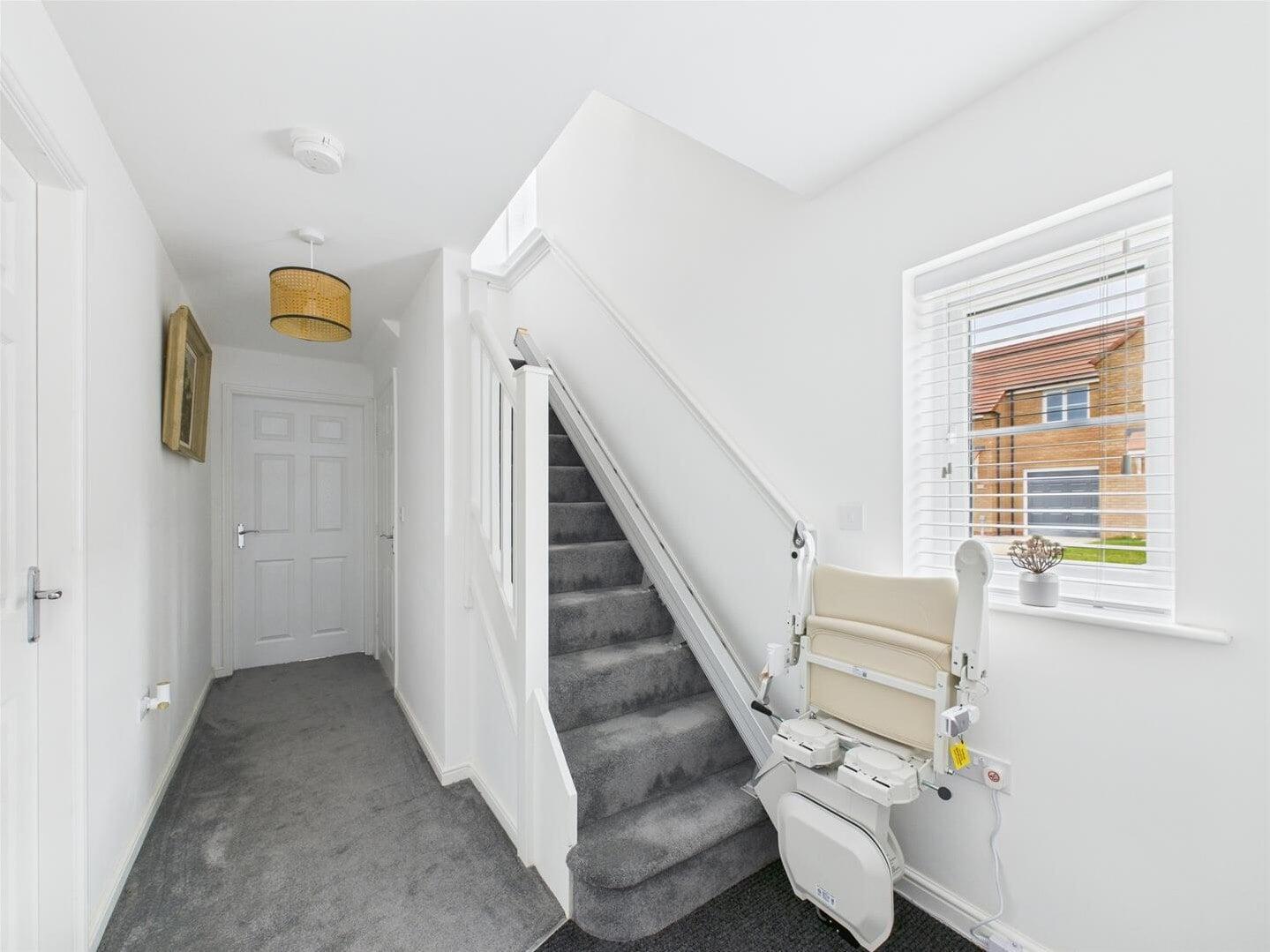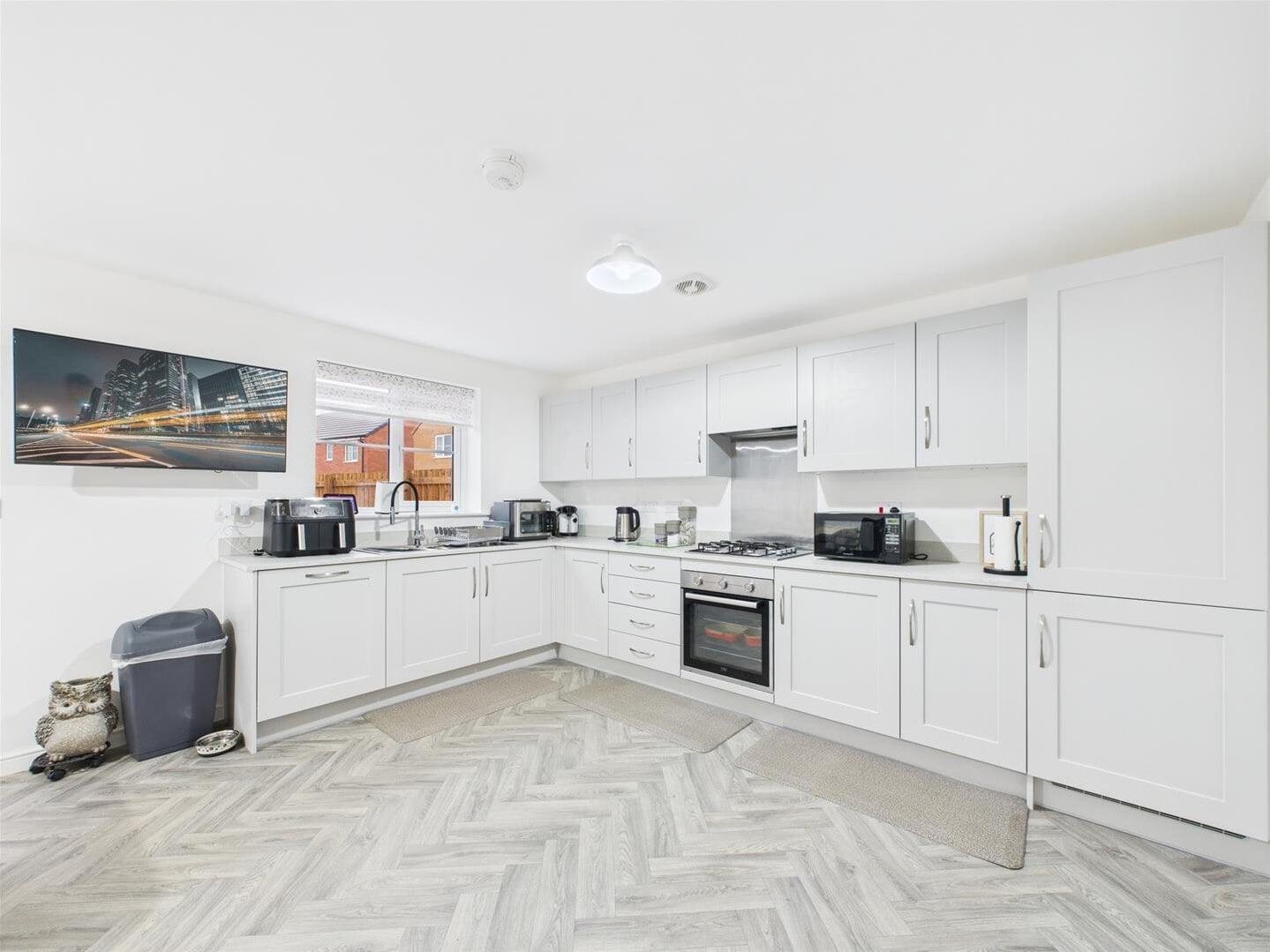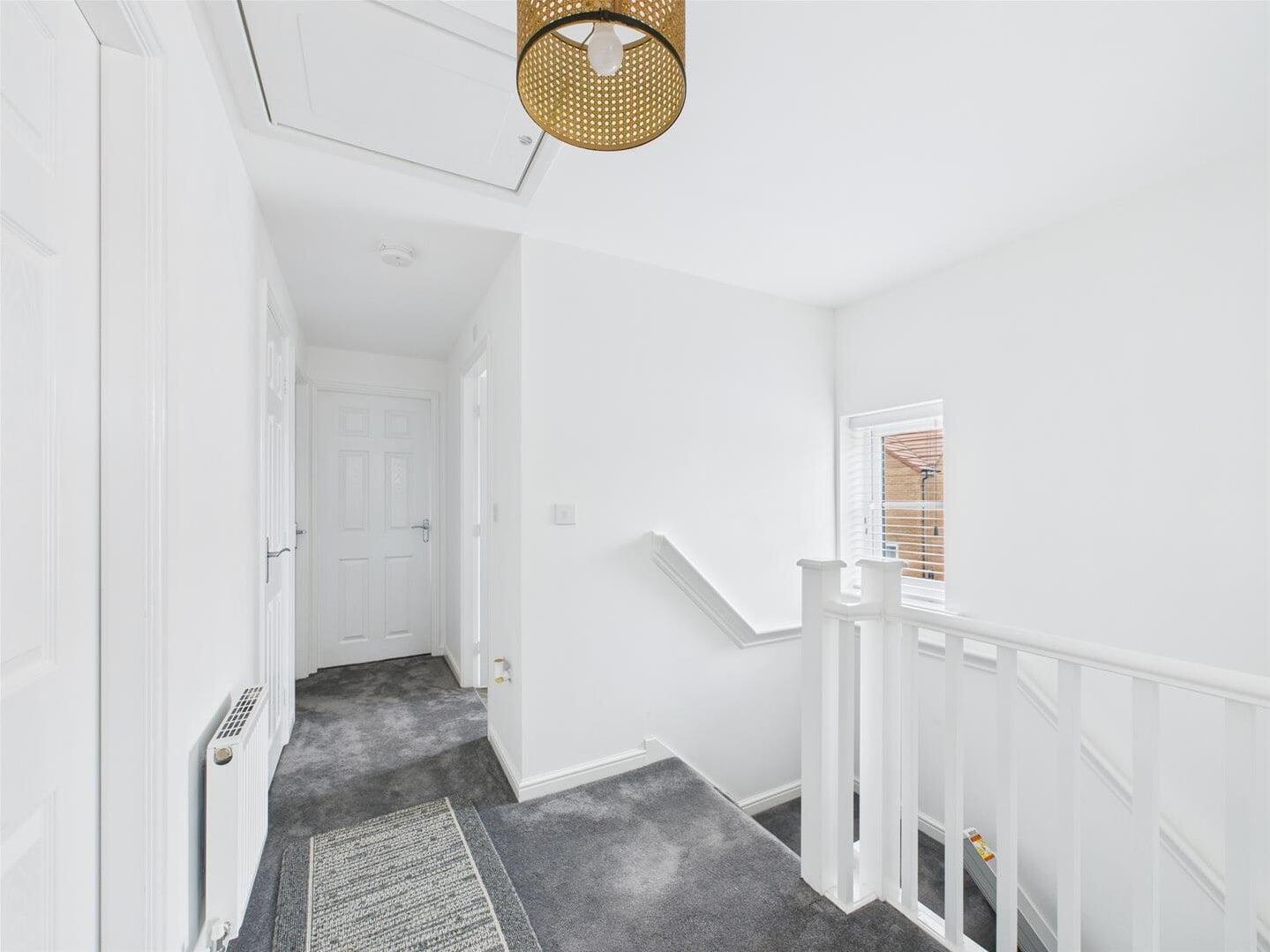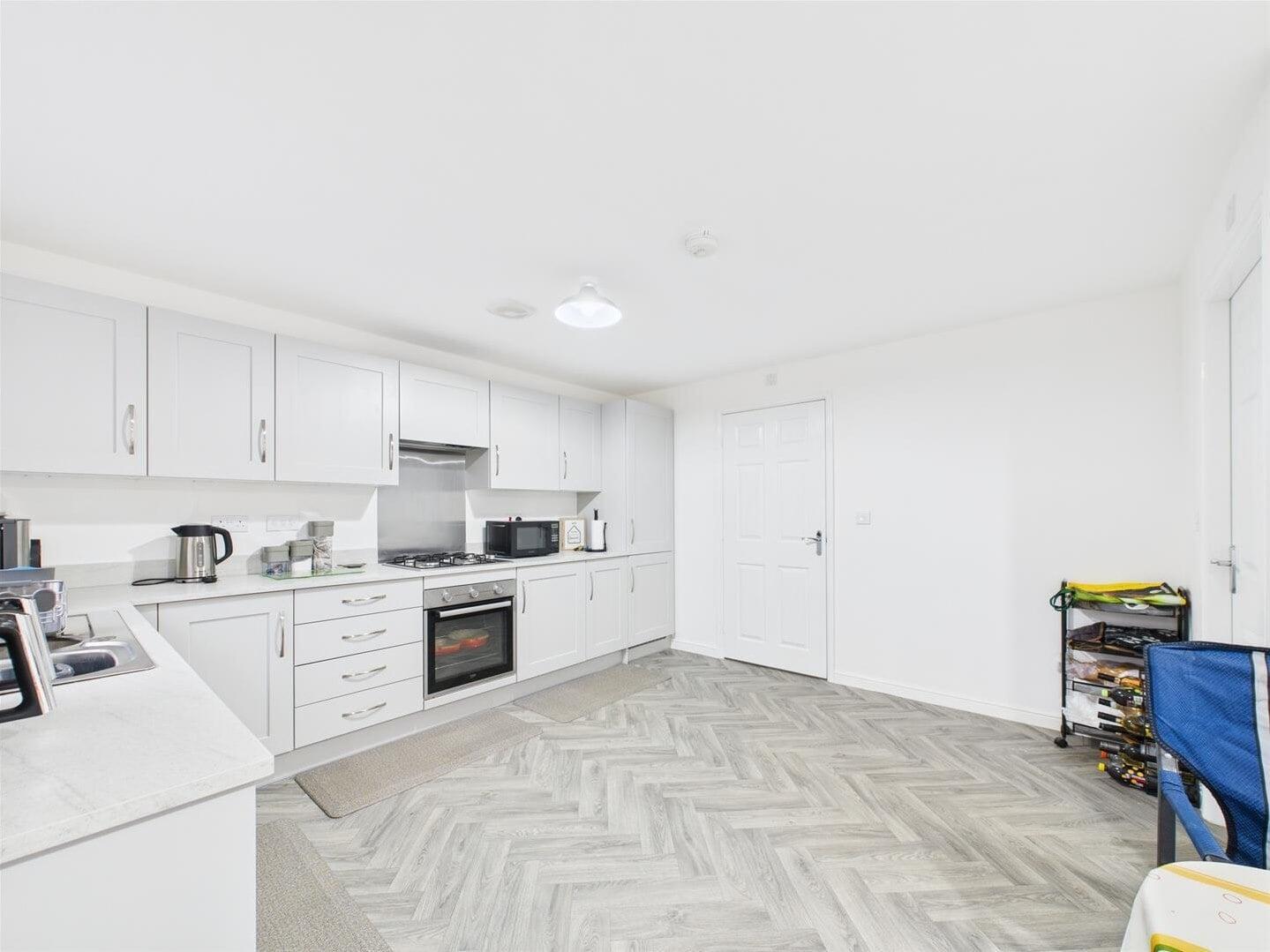 This beautifully presented four‑bedroom detached home offers the opportunity to purchase a 50% share of a modern and spacious property, tucked away within a quiet cul‑de‑sac on Eyre Crescent. Designed with contemporary living in mind, the accommodation is bright and airy throughout, enhanced by generous room sizes and large windows. The ground floor comprises a welcoming entrance hallway, a spacious dual‑aspect living room, and a modern fitted kitchen with ample space for dining and French doors opening onto the rear garden. Additional ground‑floor benefits include a separate utility room and a convenient downstairs WC.