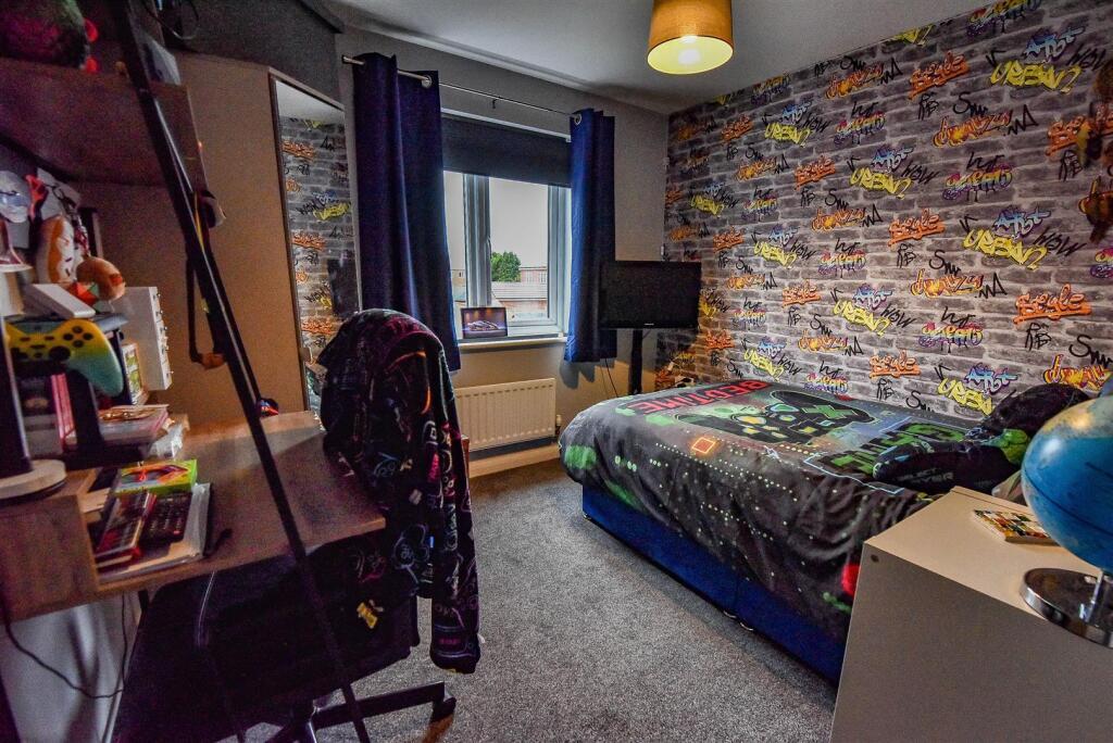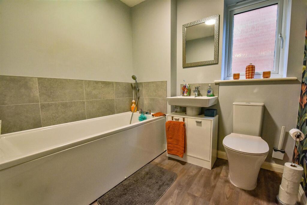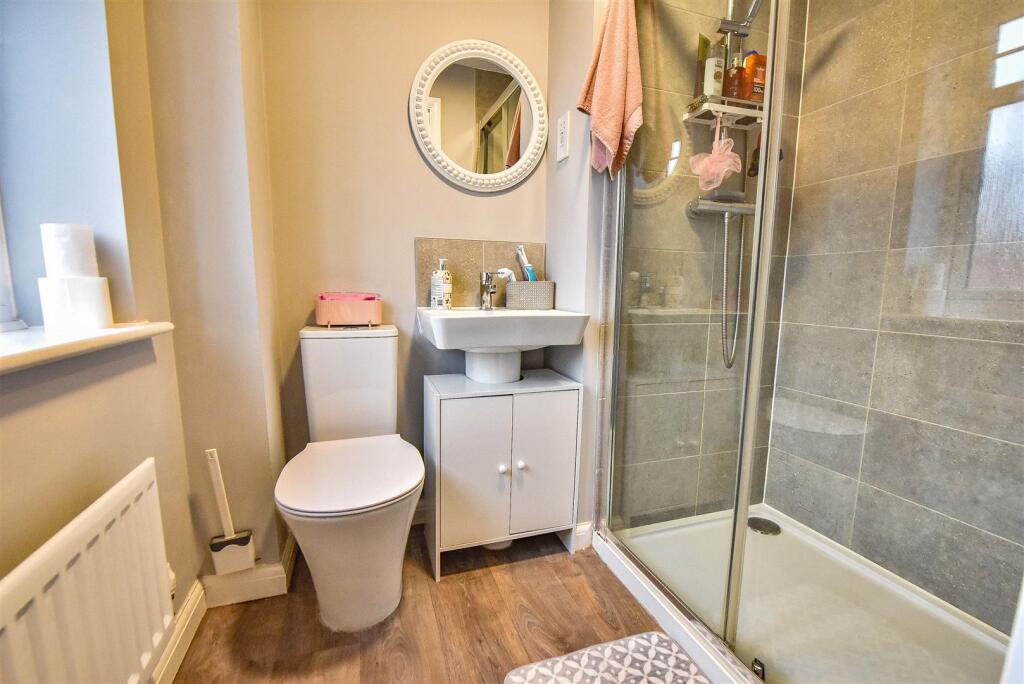 Upstairs, the property offers three bedrooms, including a principal bedroom with en‑suite shower room, alongside two further bedrooms and a modern family bathroom. Externally, the rear garden is laid mainly to lawn with a patio seating area and side access to the front. Additional benefits include driveway parking for two vehicles, double glazing, gas central heating and the remainder of a 10‑year builder’s warranty, making this an ideal, low‑maintenance home ready to move straight into.