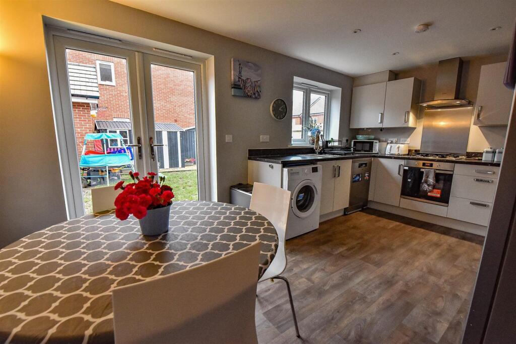 This modern three‑bedroom semi‑detached home is well presented throughout and offers bright, well‑balanced accommodation ideal for contemporary living. The ground floor comprises a welcoming entrance hallway leading to a comfortable living room, with an inner hallway providing access to a convenient cloakroom/WC and a spacious kitchen/diner to the rear. The kitchen/diner offers ample space for everyday dining and entertaining, with French doors opening directly onto the enclosed rear garden.