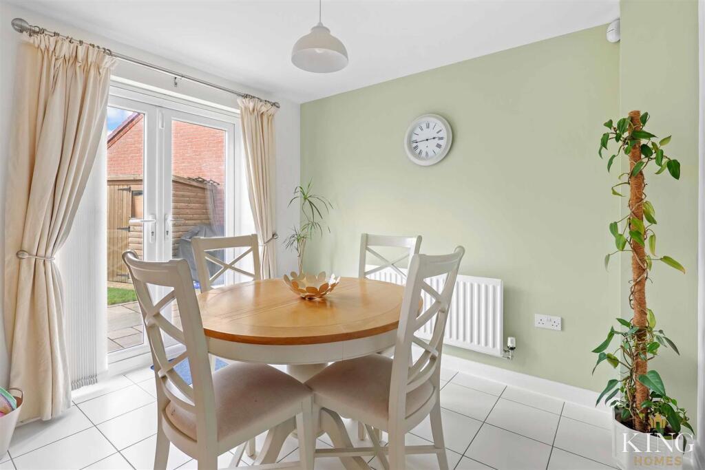 This beautifully presented three‑bedroom semi‑detached home, offered on a 50% shared ownership basis, provides a superb balance of space, comfort and practicality, ideal for modern family living. The ground floor is thoughtfully arranged, featuring an impressive open‑plan kitchen and dining room with French doors opening directly onto the landscaped rear garden, creating a bright and sociable space perfect for both everyday life and entertaining. A bay‑fronted sitting room offers a separate, cosy area to relax, while a convenient downstairs cloakroom and useful storage complete the ground floor.