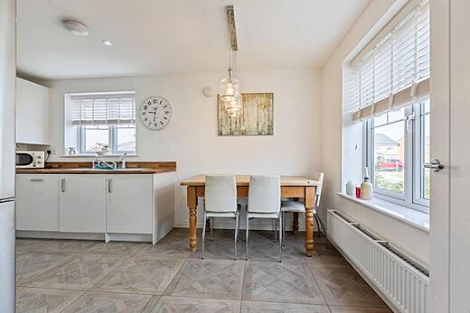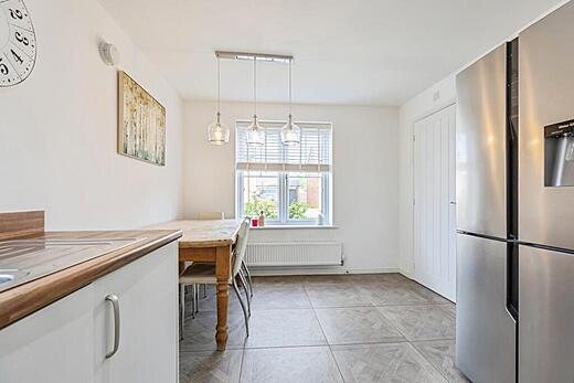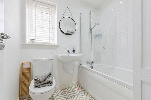 Upstairs, the home continues to impress with three generously sized bedrooms. The principal bedroom is elegantly styled with a panelled feature wall and benefits from its own en-suite shower room. The second double bedroom includes built-in wardrobes for practical storage, while the third bedroom, currently used as a home office, offers flexibility and mirrored wardrobes. A stylish family bathroom serves the remaining rooms, featuring a modern suite with a shower over the bath, a statement mirror, and chrome finishes. With high-quality finishes throughout and a location in a sought-after neighbourhood, this home offers the perfect blend of comfort, style, and affordability—ideal for first-time buyers or those looking to upsize without compromise.