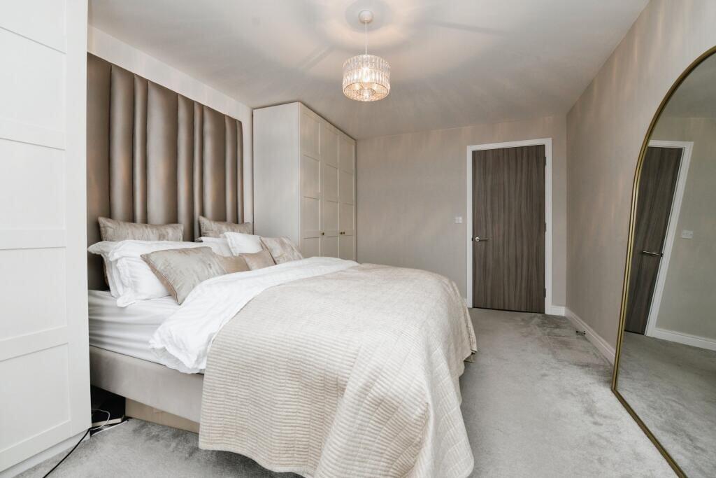 Located in the desirable Luna St. James development, this modern one-bedroom apartment offers contemporary open-plan living with a bright and airy lounge that opens onto a Juliet balcony. The sleek, handleless kitchen is fitted with integrated Neff appliances and stylish LED lighting, while the spacious bedroom features large windows and a charming picture window that adds character to the space. A beautifully designed bathroom includes high-end fixtures and elegant tiling, and a separate utility cupboard provides a discreet space for laundry.