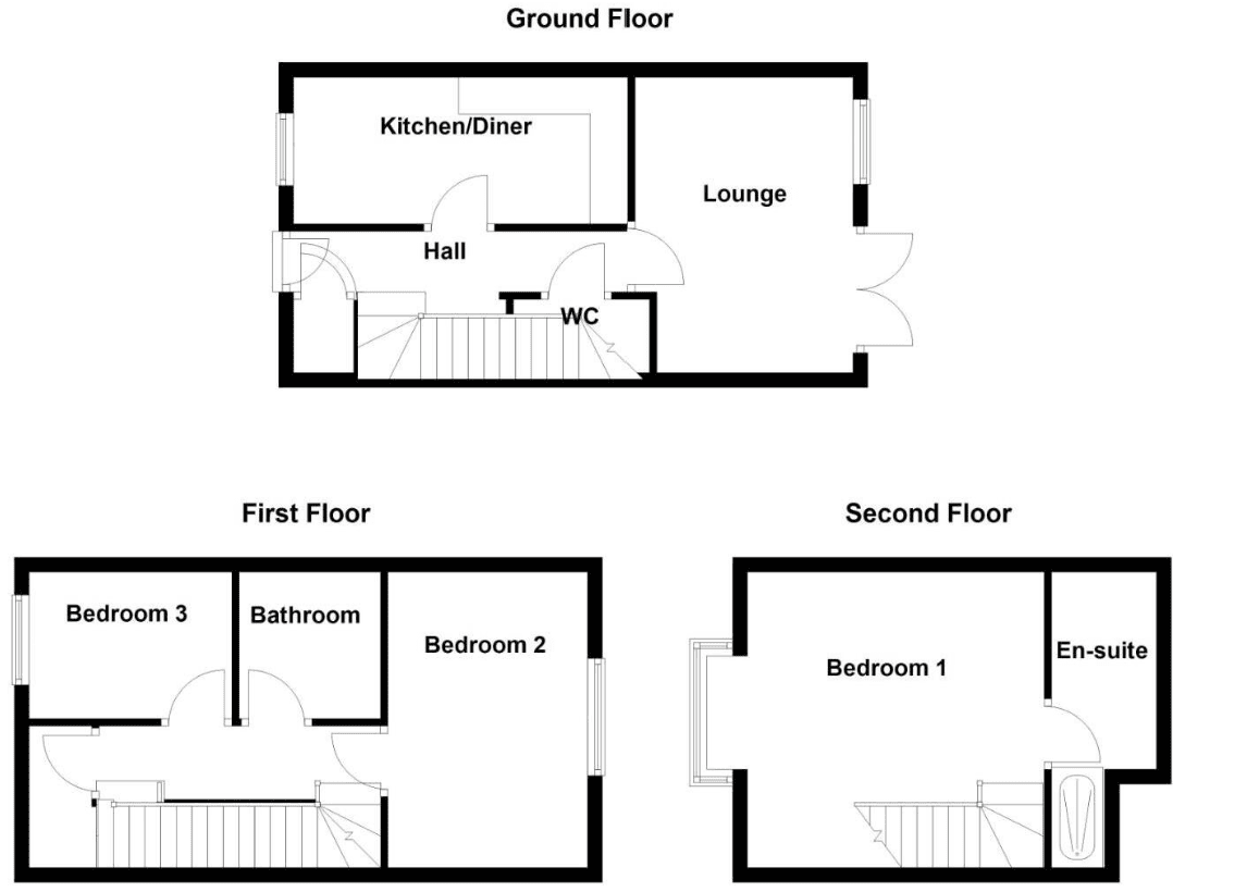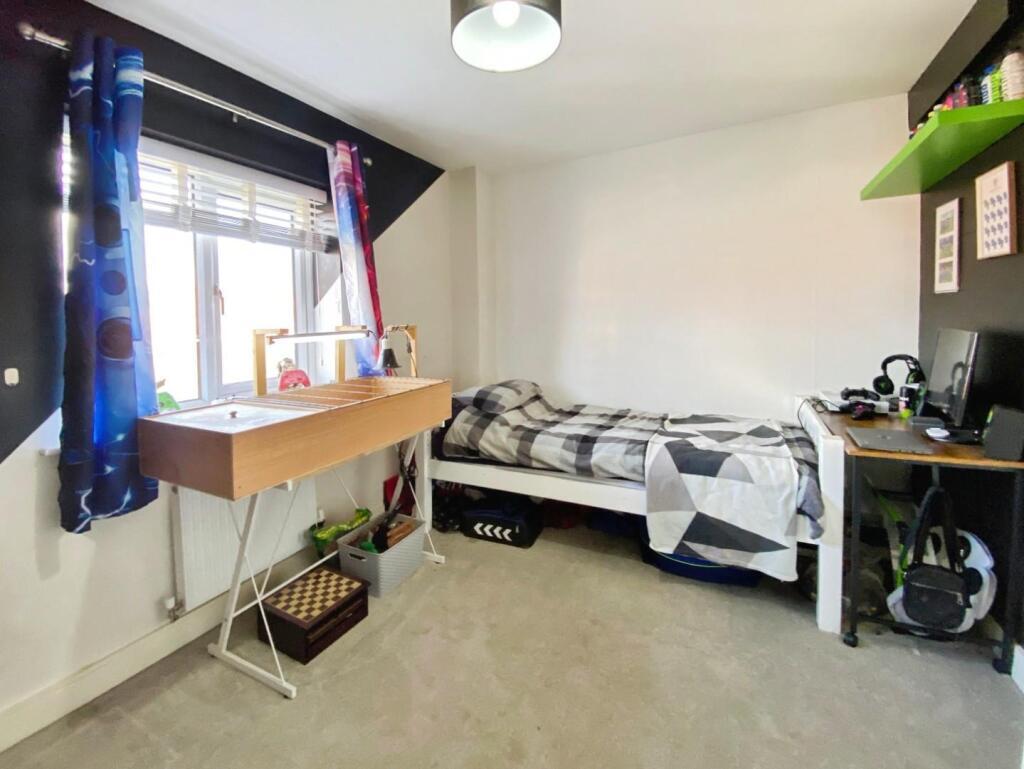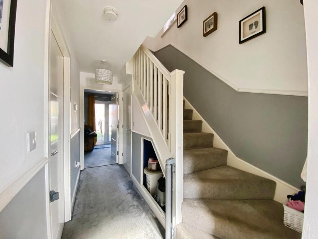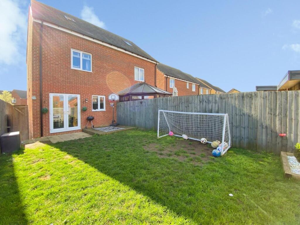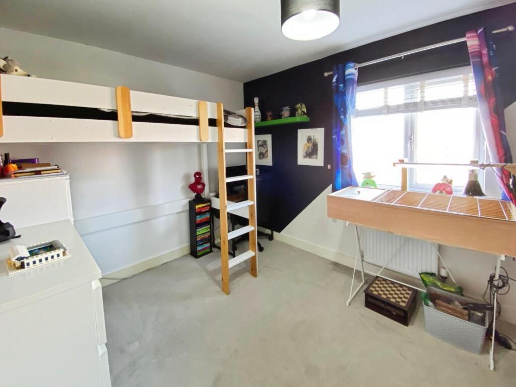 To the first floor are two bedrooms and a modern family bathroom, while the second floor is dedicated to an impressive principal bedroom with en‑suite shower room. Externally, the property benefits from a fully enclosed rear garden featuring lawn, patio, raised decking areas and a useful storage shed. Parking is provided to the front for two vehicles. Viewing is strongly recommended to fully appreciate the size, layout and quality of accommodation on offer.
