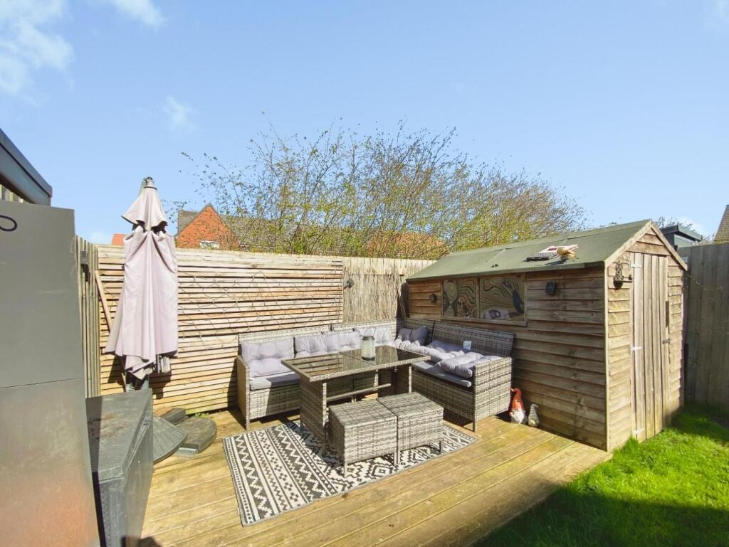 - Fully enclosed rear garden with patio, decking and storage shed